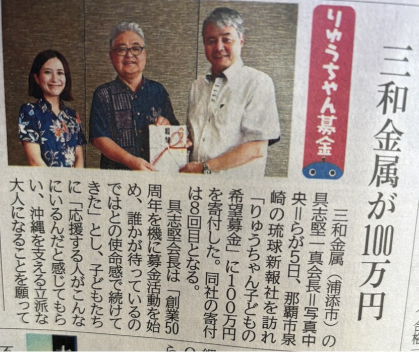 2025年8月1日(金)りゅうちゃん子どもの希望募金に100万円の寄付を行いました。