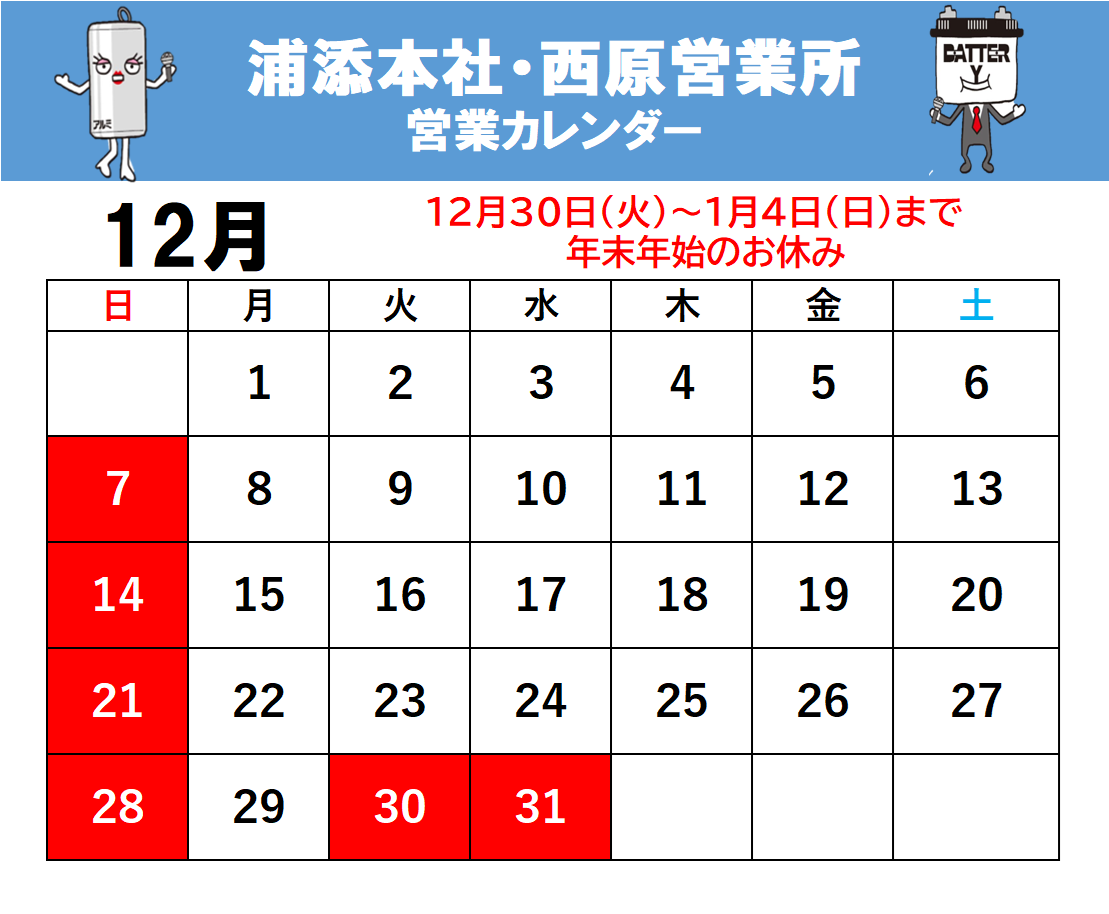 12月営業案内