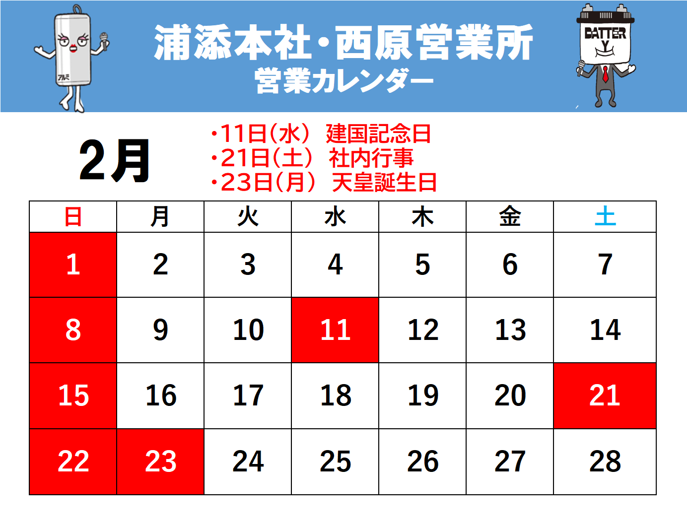 2月営業日案内